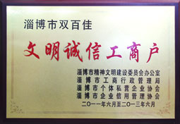 行業(yè)誠(chéng)信經(jīng)營(yíng)企業(yè),淄博市文明誠(chéng)信工商戶,誠(chéng)實(shí)守信,誠(chéng)信為本。